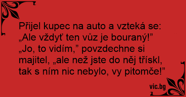 „Jo, to vidím,” povzdechne si majitel, „ale než jste do něj třískl, tak s ním nic nebylo, vy pitomče!”