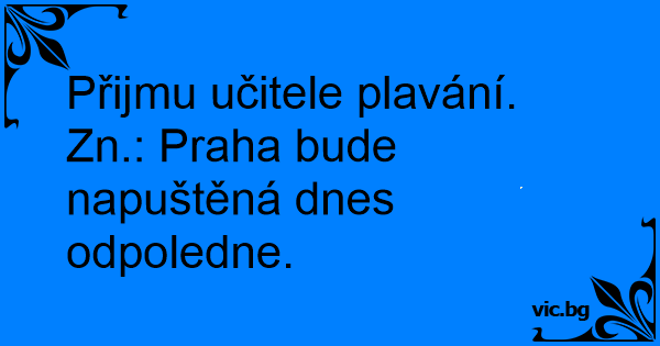 Přijmu učitele plavání. Zn.: Praha bude napuštěná dnes odpoledne.