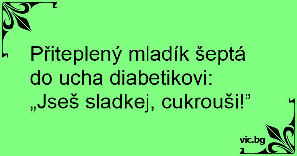 Přiteplený mladík šeptá do ucha diabetikovi: „Jseš sladkej, cukrouši!”