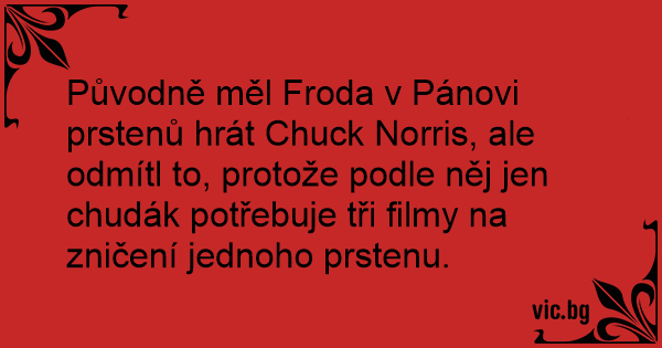 Původně měl Froda v Pánovi prstenů hrát Chuck Norris, ale odmítl to, protože podle něj jen chudák potřebuje tři filmy na zničení jednoho prstenu.