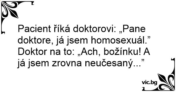 Pacient říká doktorovi: „Pane doktore, já jsem homosexuál.”