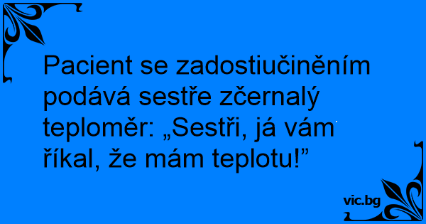 Pacient se zadostiučiněním podává sestře zčernalý teploměr: „Sestři, já vám říkal, že mám teplotu!”