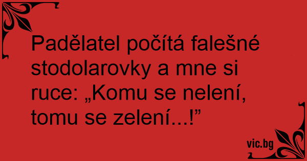 Padělatel počítá falešné stodolarovky a mne si ruce: „Komu se nelení, tomu se zelení...!”