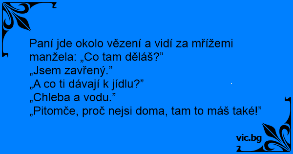 Paní jde okolo vězení a vidí za mřížemi manžela: „Co tam děláš?”