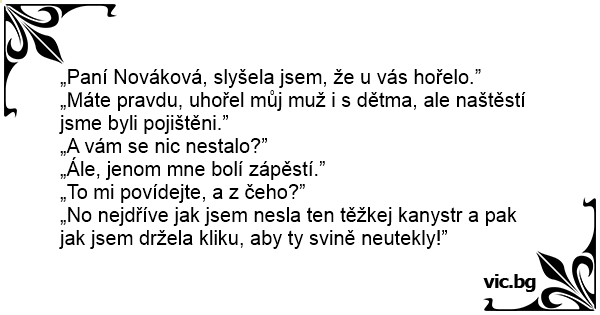 „Paní Nováková, slyšela jsem, že u vás hořelo.”