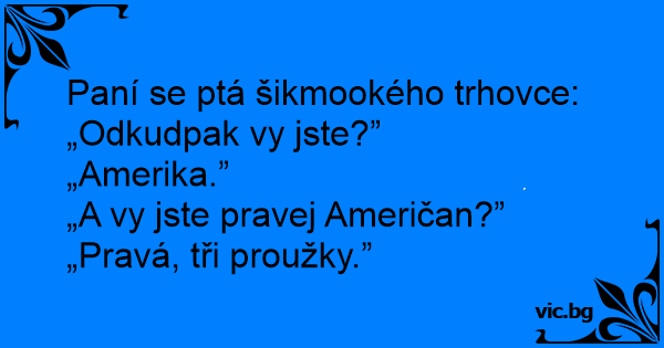 „A vy jste pravej Američan?”