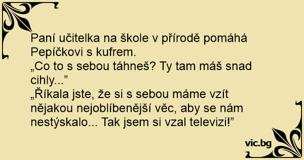 „Říkala jste, že si s sebou máme vzít nějakou nejoblíbenější věc, aby se nám nestýskalo... Tak jsem si vzal televizi!”