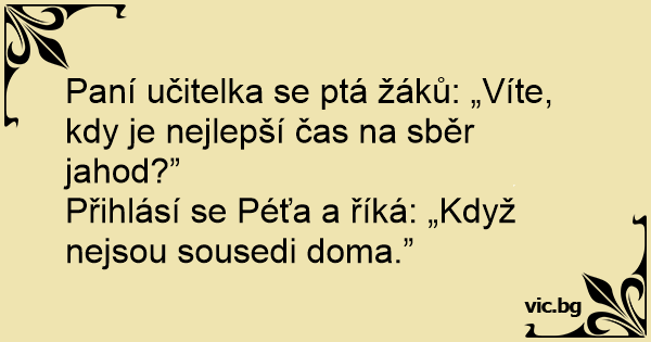 Přihlásí se Péťa a říká: „Když nejsou sousedi doma.”