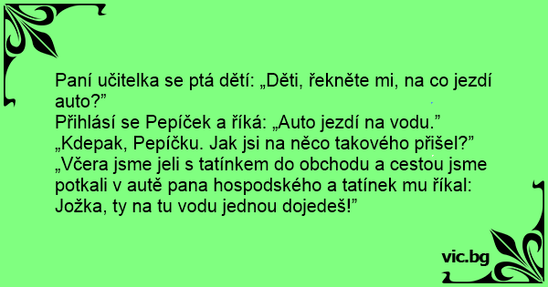 Přihlásí se Pepíček a říká: „Auto jezdí na vodu.”