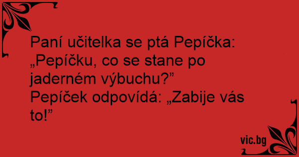Paní učitelka se ptá Pepíčka: „Pepíčku, co se stane po jaderném výbuchu?”