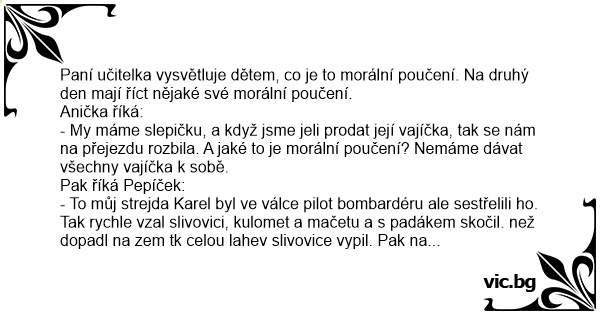 - Ohh, to je strašné Pepíčku, a jaké z toho plyne morální poučení?