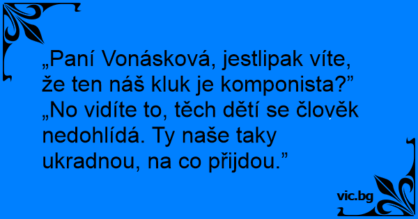 „Paní Vonásková, jestlipak víte, že ten náš kluk je komponista?”