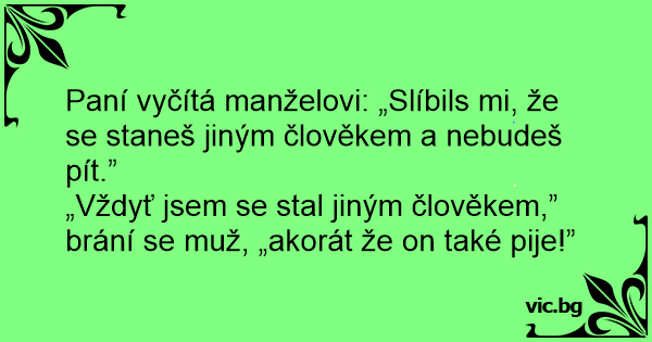 Paní vyčítá manželovi: „Slíbils mi, že se staneš jiným člověkem a nebudeš pít.”