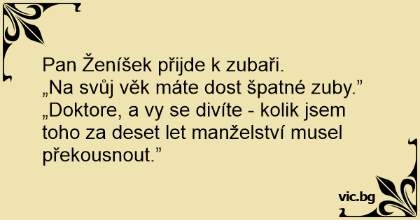 „Doktore, a vy se divíte - kolik jsem toho za deset let manželství musel překousnout.”
