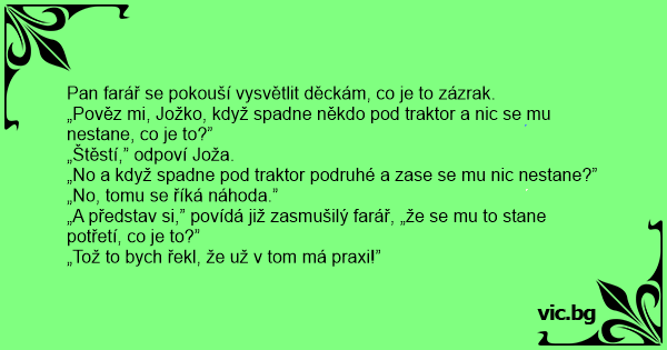 „A představ si,” povídá již zasmušilý farář, „že se mu to stane potřetí, co je to?”