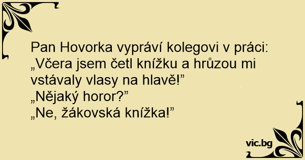 „Včera jsem četl knížku a hrůzou mi vstávaly vlasy na hlavě!”