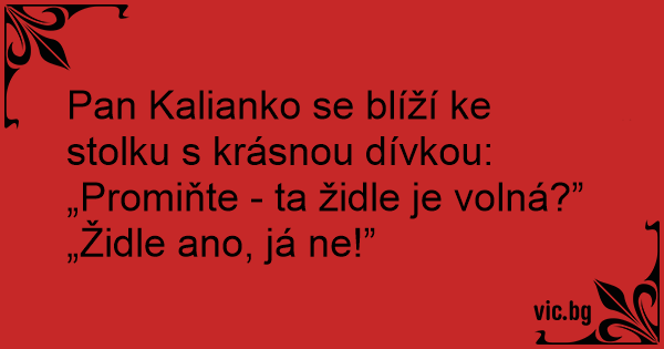 Pan Kalianko se blíží ke stolku s krásnou dívkou: „Promiňte - ta židle je volná?”
