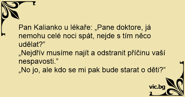 Pan Kalianko u lékaře: „Pane doktore, já nemohu celé noci spát, nejde s tím něco udělat?”