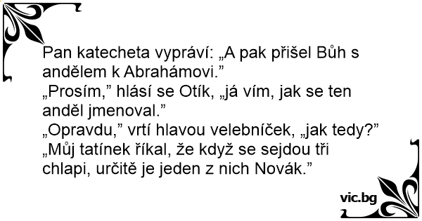 „Prosím,” hlásí se Otík, „já vím, jak se ten anděl jmenoval.”