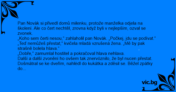 „Koho sem čerti nesou,” zahlaholil pan Novák. „Počkej, jdu se podívat.”