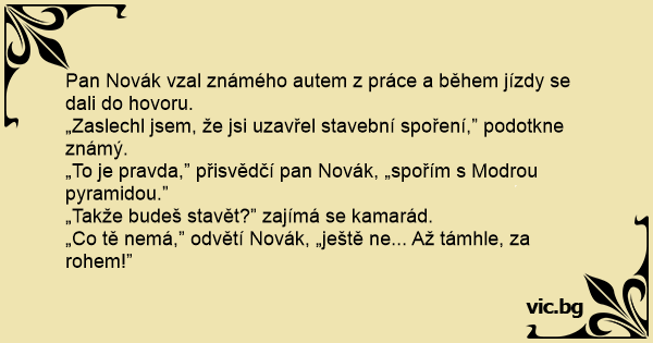 „Co tě nemá,” odvětí Novák, „ještě ne... Až támhle, za rohem!”