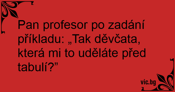 Pan profesor po zadání příkladu: „Tak děvčata, která mi to uděláte před tabulí?”