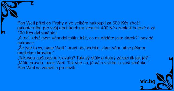 „Že jste to vy, pane Weil,” praví obchodník, „dám vám tuhle pěknou anglickou kravatu.”