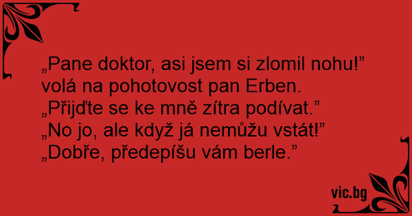 „Pane doktor, asi jsem si zlomil nohu!” volá na pohotovost pan Erben.