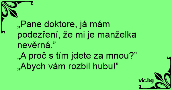 „Pane doktore, já mám podezření, že mi je manželka nevěrná.”