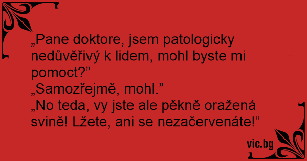 „Pane doktore, jsem patologicky nedůvěřivý k lidem, mohl byste mi pomoct?”