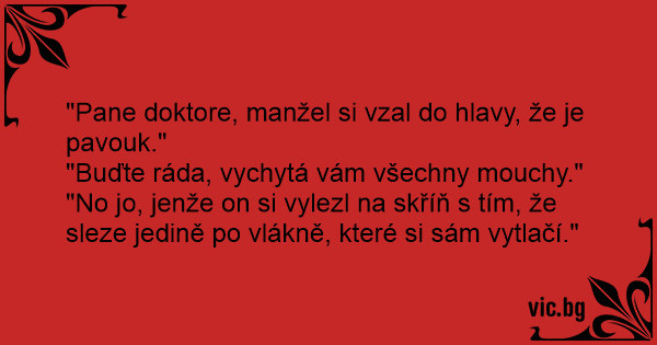 "Pane doktore, manžel si vzal do hlavy, že je pavouk."