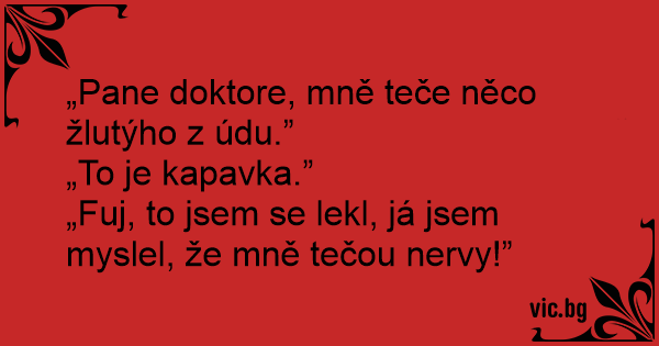 „Pane doktore, mně teče něco žlutýho z údu.”
