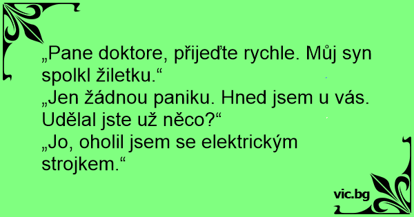 „Pane doktore, přijeďte rychle. Můj syn spolkl žiletku.“