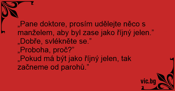 „Pane doktore, prosím udělejte něco s manželem, aby byl zase jako říjný jelen.”