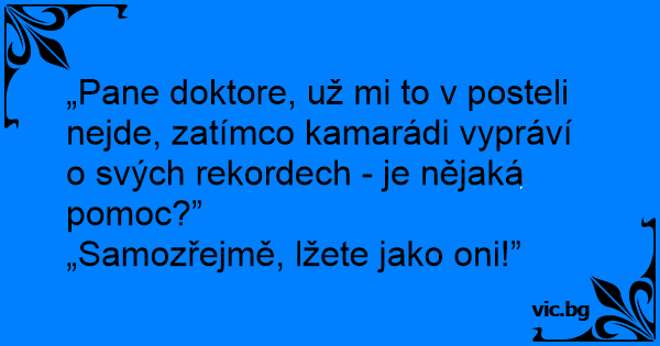 „Pane doktore, už mi to v posteli nejde, zatímco kamarádi vypráví o svých rekordech - je nějaká pomoc?”