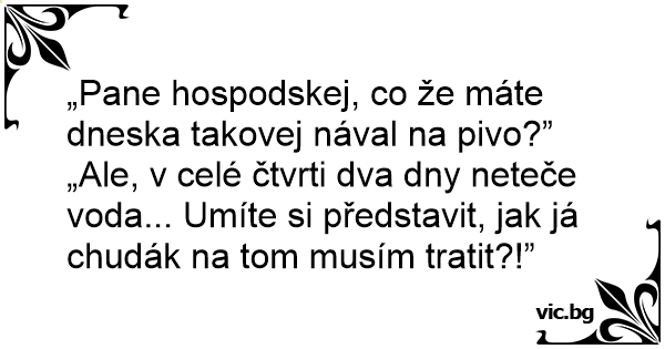 „Pane hospodskej, co že máte dneska takovej nával na pivo?”