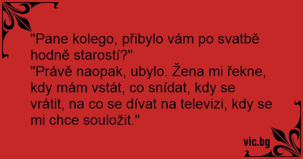 "Pane kolego, přibylo vám po svatbě hodně starostí?"