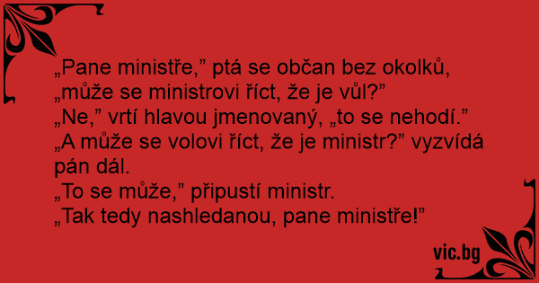 „Pane ministře,” ptá se občan bez okolků, „může se ministrovi říct, že je vůl?”