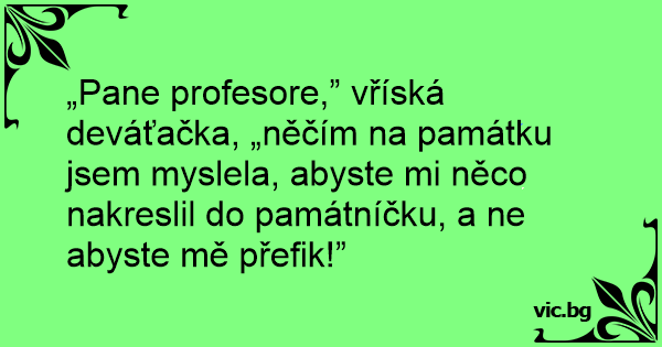 „Pane profesore,” vříská deváťačka, „něčím na památku jsem myslela, abyste mi něco nakreslil do památníčku, a ne abyste mě přefik!”