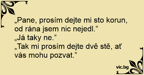 „Pane, prosím dejte mi sto korun, od rána jsem nic nejedl.”