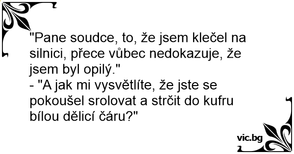 "Pane soudce, to, že jsem klečel na silnici, přece vůbec nedokazuje, že jsem byl opilý."