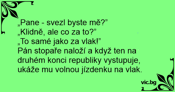 Pán stopaře naloží a když ten na druhém konci republiky vystupuje, ukáže mu volnou jízdenku na vlak.