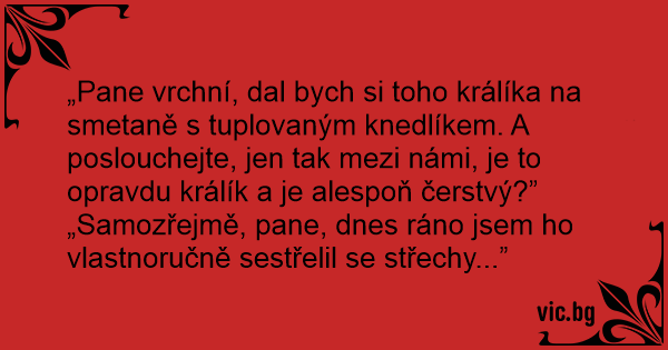 „Pane vrchní, dal bych si toho králíka na smetaně s tuplovaným knedlíkem. A poslouchejte, jen tak mezi námi, je to opravdu králík a je alespoň čerstvý?”