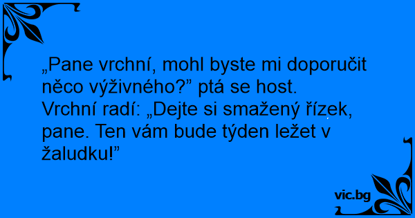 „Pane vrchní, mohl byste mi doporučit něco výživného?” ptá se host.