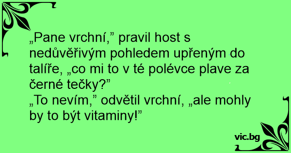 „To nevím,” odvětil vrchní, „ale mohly by to být vitaminy!”
