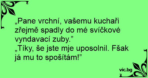 „Pane vrchní, vašemu kuchaři zřejmě spadly do mé svíčkové vyndavací zuby.”