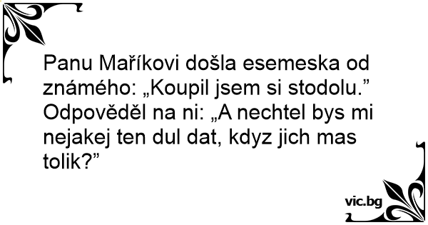 Odpověděl na ni: „A nechtel bys mi nejakej ten dul dat, kdyz jich mas tolik?”