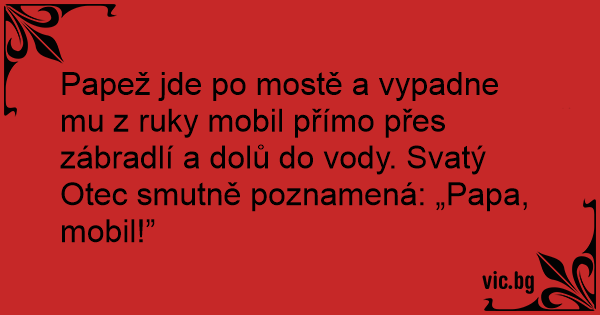Papež jde po mostě a vypadne mu z ruky mobil přímo přes zábradlí a dolů do vody. Svatý Otec smutně poznamená: „Papa, mobil!”