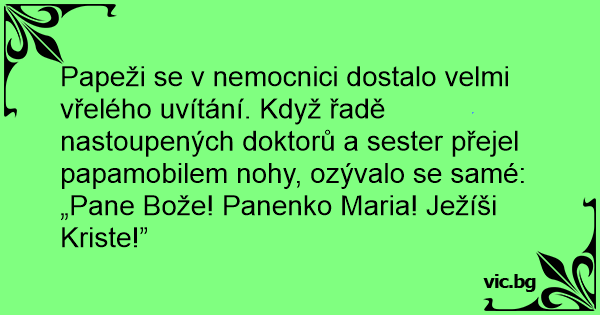 Papeži se v nemocnici dostalo velmi vřelého uvítání. Když řadě nastoupených doktorů a sester přejel papamobilem nohy, ozývalo se samé: „Pane Bože! Panenko Maria! Ježíši Kriste!”