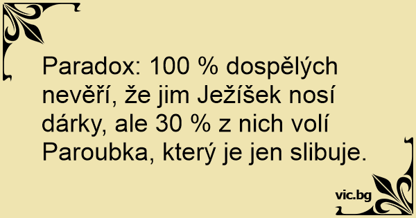 Paradox: 100 % dospělých nevěří, že jim Ježíšek nosí dárky, ale 30 % z nich volí Paroubka, který je jen slibuje.